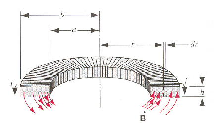 = \frac{\mu_0 i N h}{2 \pi} \int_a^b \frac{dr}{r} = \frac{\mu_0 i N h}{2 \pi} \ln \frac{b}{a}
