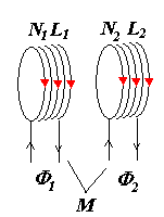 M_{12} = \frac{\Psi_{12}}{i_1} = \frac{N_2 \Phi_{12}}{i_1}; \quad \varepsilon_2 = -\frac{d\Psi_{12}}{dt} = -M_{12} \frac{di_1}{dt}, \quad (i_1 \text{ change})