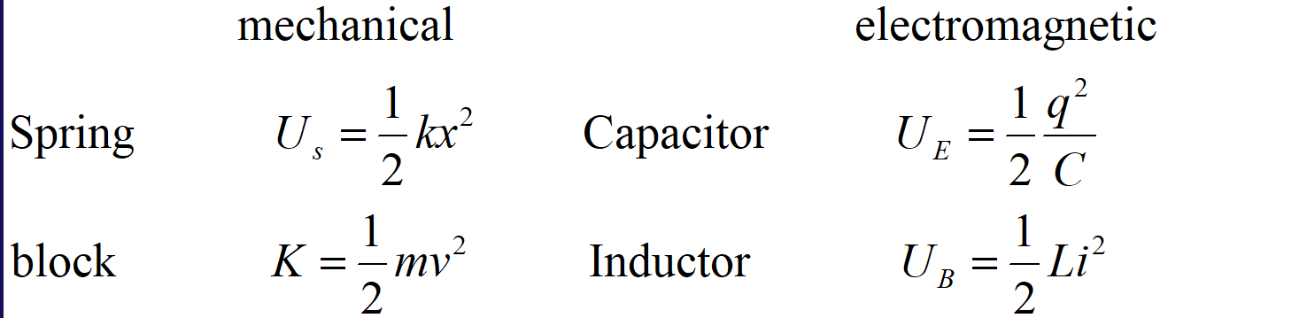 U = U_B + U_E = \frac{1}{2} Li^2 + \frac{1}{2} \frac{q^2}{C}