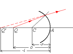 如果是平面镜,那么\(r \to \infty\),成虚像;