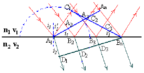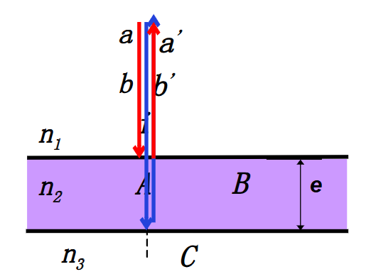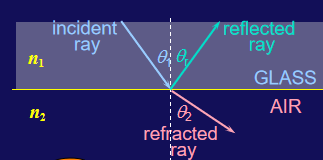 例如,在玻璃中,\(n=1.5\),在空气中,\(n_0=1\);又有