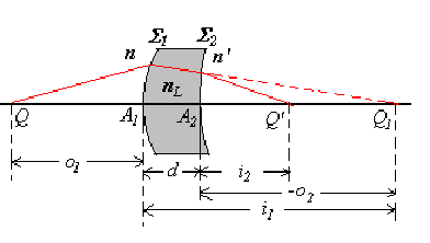 其中\(o_2\)是Q经过第一个球面镜的虚像像距,是负的;
