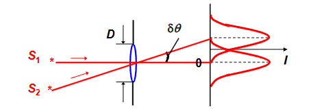 使用瑞利判据,当其可以分辨时,两者角度相差为半角宽度,即