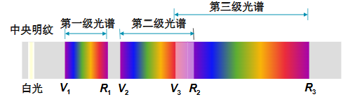 光栅光谱是指复色光照射光栅时,谱线按波长向外侧依次分开排列,形成的光谱;