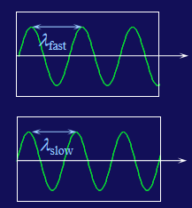 - 蓝移:波源靠近接收者,波长变短,频率变大,光谱向蓝色移动