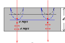 具体来说,当一束未偏振的光进入双折射介质时,会分裂成两束光线:一束遵循常规折射定律(斯涅尔定律),称为普通光(ordinary light, o光);另一束则不遵循常规折射定律,称为非常光(extraordinary light, e光)。