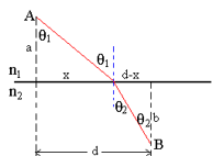 费马原理是指光线在传播过程中,若可以成像,则光程的变分为零(对某一个变量求偏导为零)