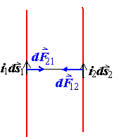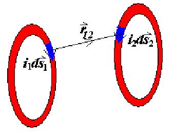 F_{21} = \frac{\mu_0}{4 \pi} \frac{i_1 ds_1 \times (i_2ds_2 \times \hat{r_{21}})}{r_{21}^2}