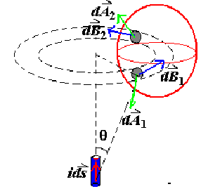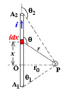 B &= \frac{\mu_0}{4\pi} \int_{A_1}^{A_2} \frac{i ds \sin \theta}{r^2}\\
