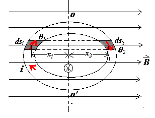 现在将结论推广到任意形状的线圈,如图,磁偶极矩与磁场垂直
